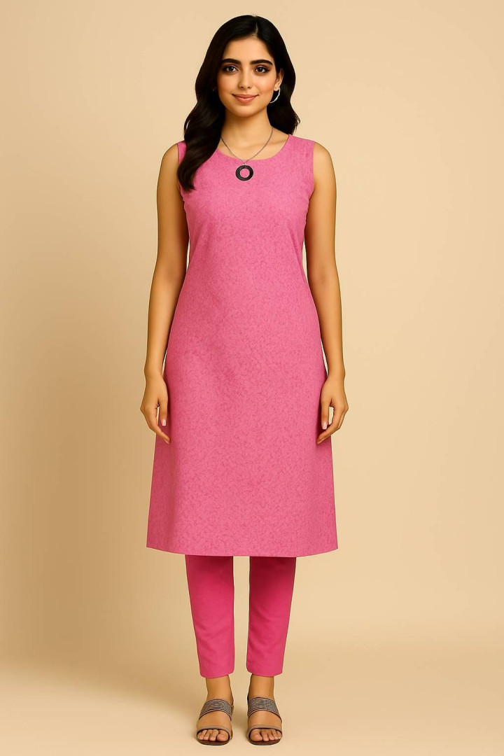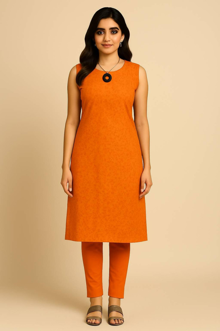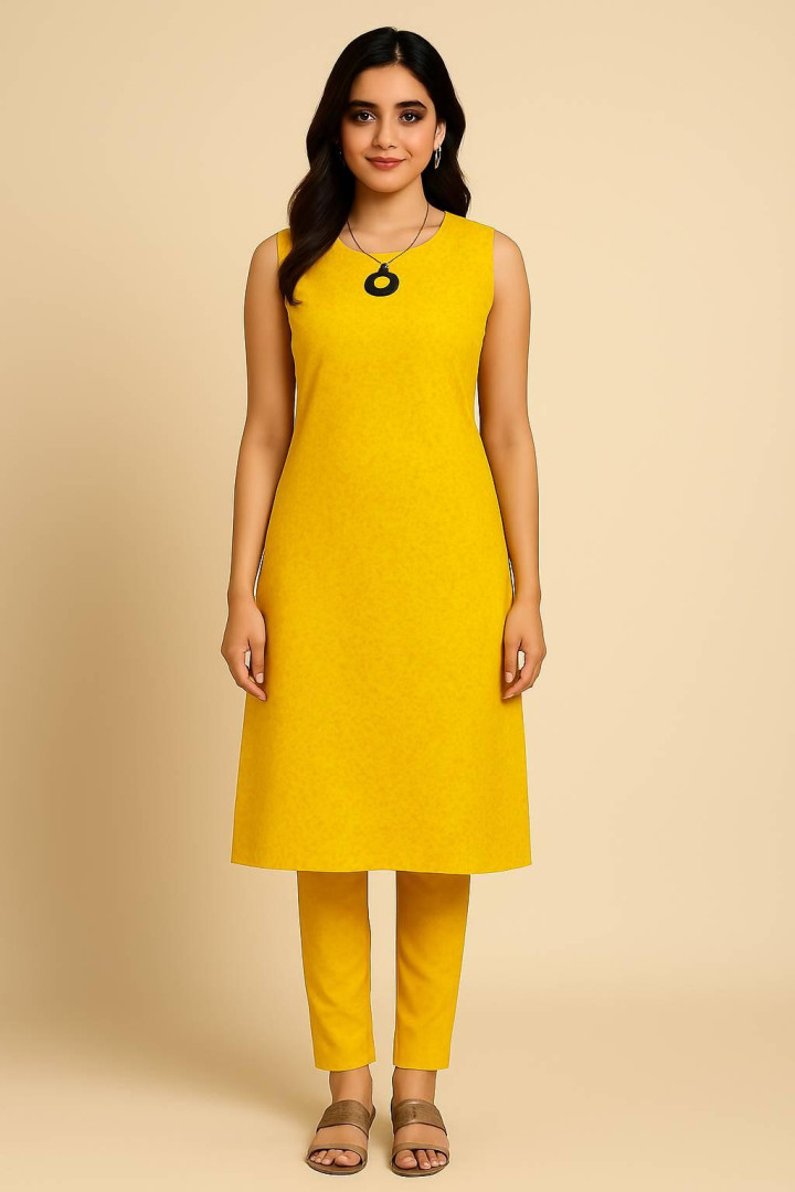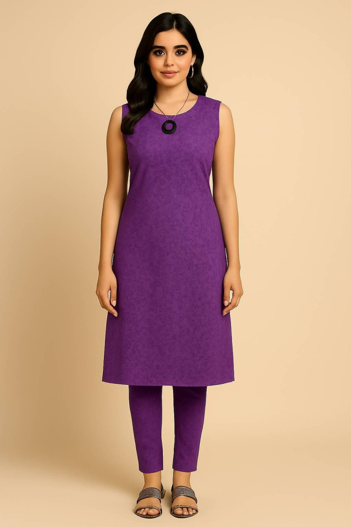 Beautiful sleeveless solid kurti in a stylish straight-fit-desgin.