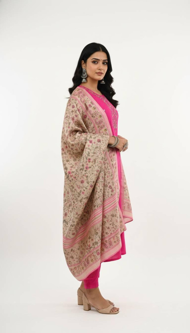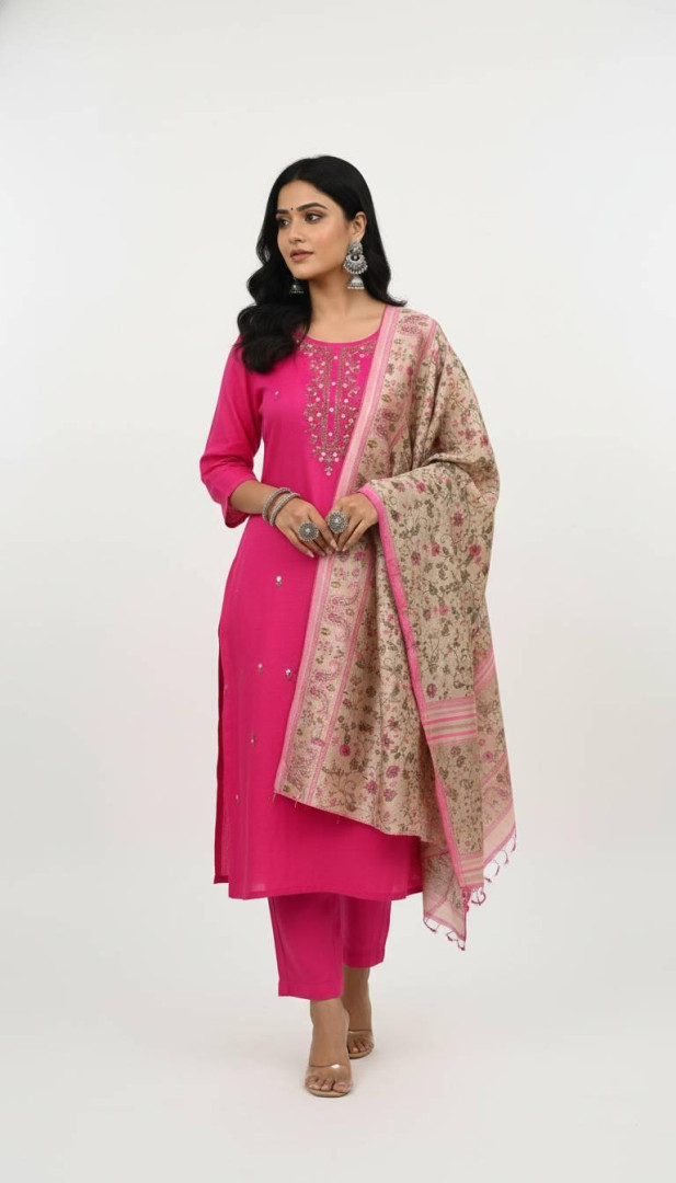 Elegant Vichitra silk set crafted with a rich, premium finish.