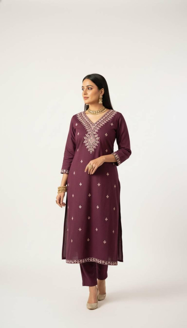 Elegant embroidered Test kurti in a classic straight-fit design.